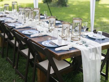 Includes drop-off and delivery of trailer containing 6 farmhouse-style tables with chairs for up to 60 people and lots of useful extras! Look below for more details!